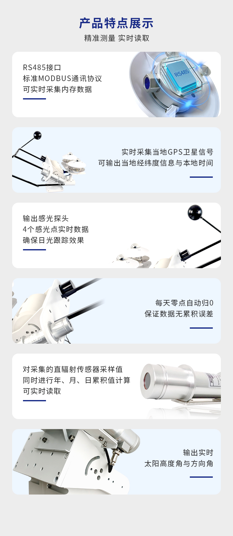 TBS-2LGG-2多功能太陽全自動跟蹤儀是一款集高精度傳感器、智能算法與精密機械結構于一體的創新產品。它能夠實時追蹤太陽的位置,確保光伏板、太陽能集熱器等設備始終面向太陽,提高吸收太陽能輻射量,顯著提升能源轉換效率。