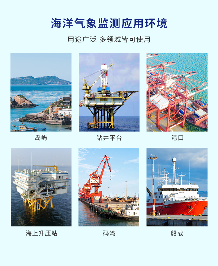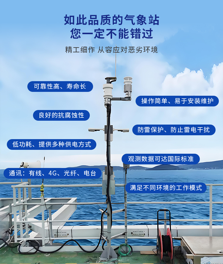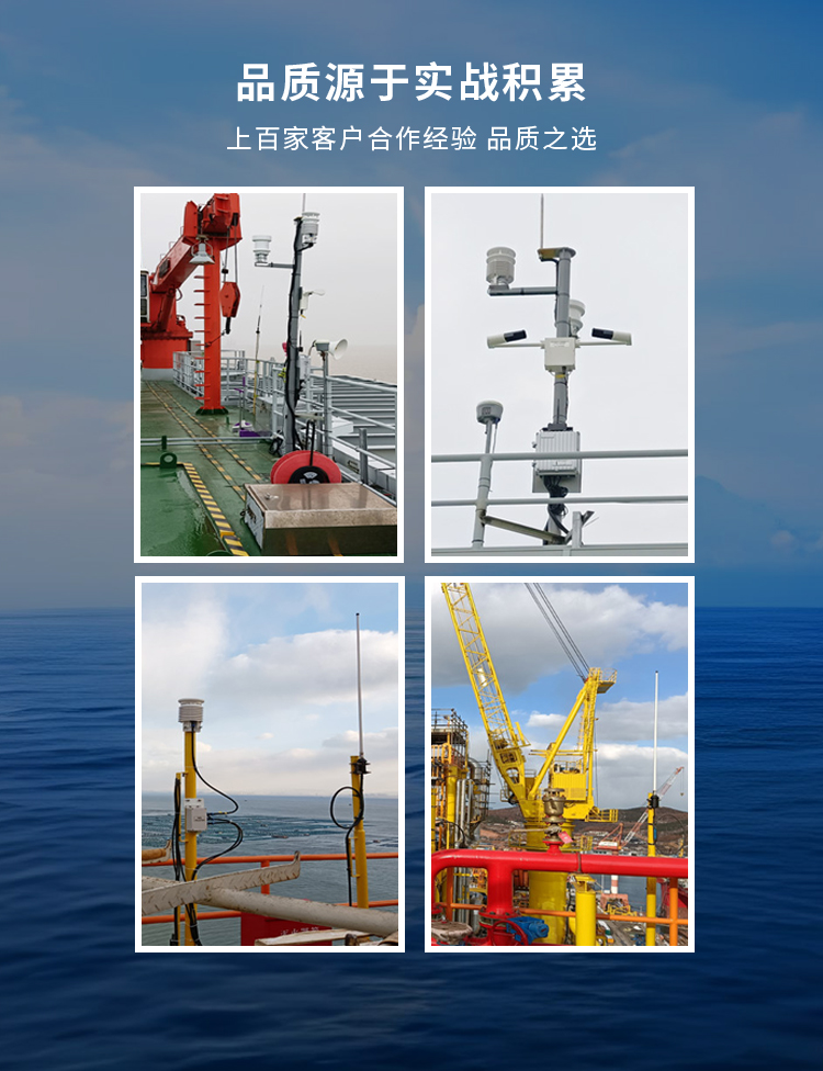 海洋氣象站—專為海上環境打造,采用特殊材質和高級防護等級,輕松應對鹽霧侵蝕。我們的產品集成高精度氣象監測技術與先進數據分析系統,實時測量風速、風向、溫度、濕度、氣壓和海浪高度,確保航海者獲得準確的氣象預警。應用專業級船用線纜,安裝穩固,自帶羅盤定位,直接輸出真實風速、風向數據。無論是遠洋漁船、海上鉆井平臺還是救援隊,海洋氣象站都能助您在任何海況下安全高效作業。
