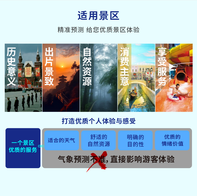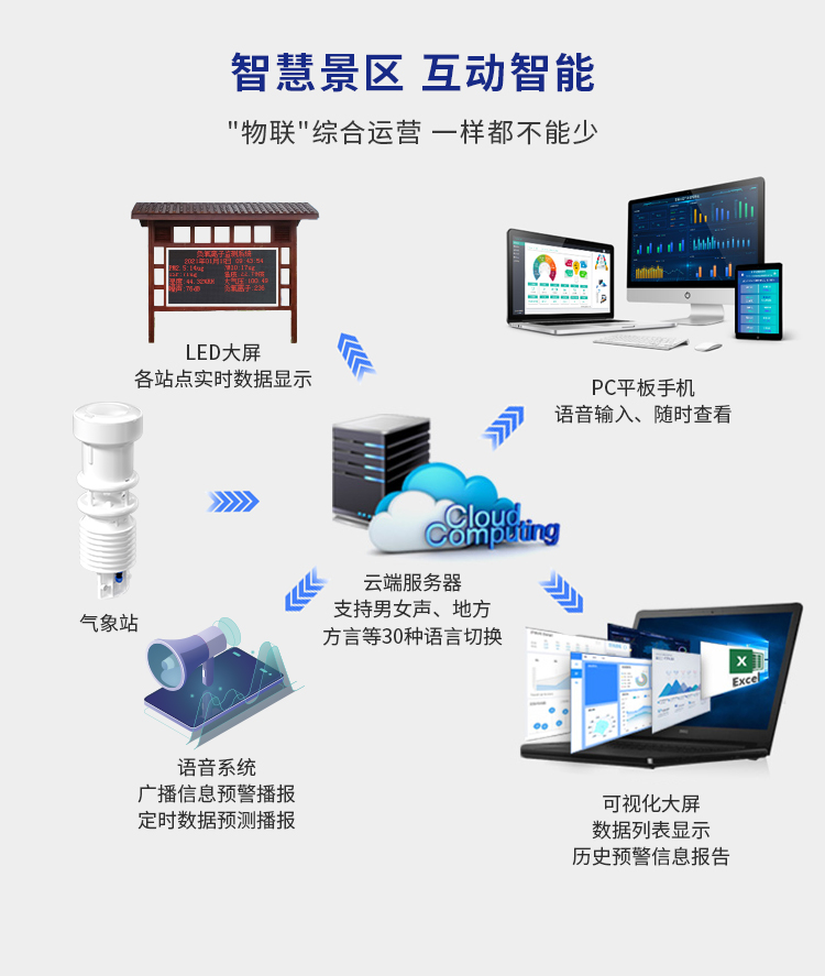 景區氣象站集高精度測量、智能分析與實時傳輸于一體,能夠全天候監測并實時展示風速、風向、溫度、濕度、氣壓、降水量等關鍵氣象數據。憑借先進的傳感器技術和云計算平臺,它為您的景區提供精準、可靠的氣象信息,助您做出明智的決策,確保游客的安全與舒適。