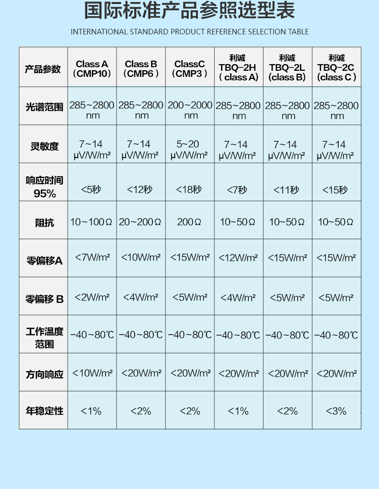 TBQ-2H太陽(yáng)總輻射傳感器(Class A),又稱天空輻射表,專注于測(cè)量水平面上接收到的太陽(yáng)直接輻射與散射輻射之和的總輻射(短波)。這款設(shè)備專為太陽(yáng)能資源評(píng)估、環(huán)境監(jiān)測(cè)及氣候研究等領(lǐng)域打造,具備全面、準(zhǔn)確的測(cè)量能力,能夠?yàn)橛脩籼峁┰敱M的太陽(yáng)能資源數(shù)據(jù)。其高精度、高穩(wěn)定性的測(cè)量性能,以及簡(jiǎn)單易用、維護(hù)方便的特點(diǎn),使其成為氣象站、農(nóng)業(yè)試驗(yàn)田、太陽(yáng)能電站等戶外環(huán)境的理想選擇。
