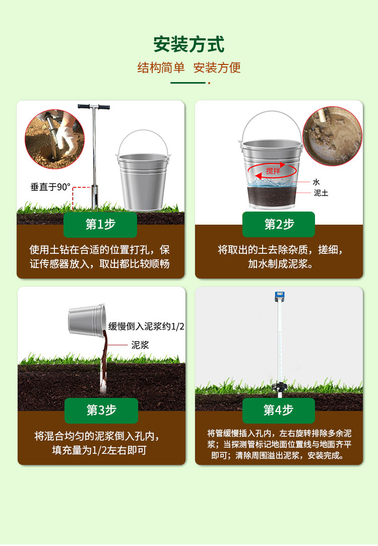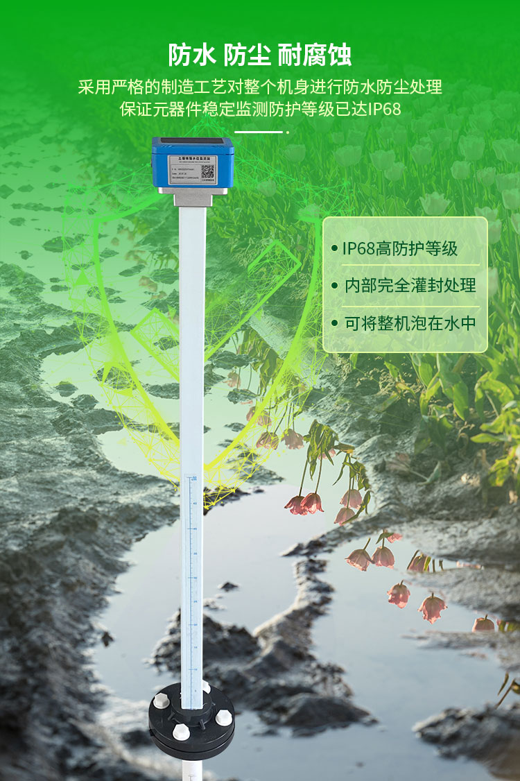 土壤墑情水位一體監測儀,專為現代農田、果園、溫室大棚及科研實驗量身打造,精準灌溉,降本增收,守護每一顆果實。進口傳感器,地下部分準確測量土壤中的水分含量和溫度,地上部分測量液位高度,確保數據的可靠性。2uA低功耗超長續航,鋰電池加太陽能充電系統,滿配電池在陰雨天,可工作200天以上。IP68防水級材質,抗離子干擾,適應復雜土壤環境。4G傳輸,支持PC端與手機APP雙平臺查看,及時干預,科學種植。