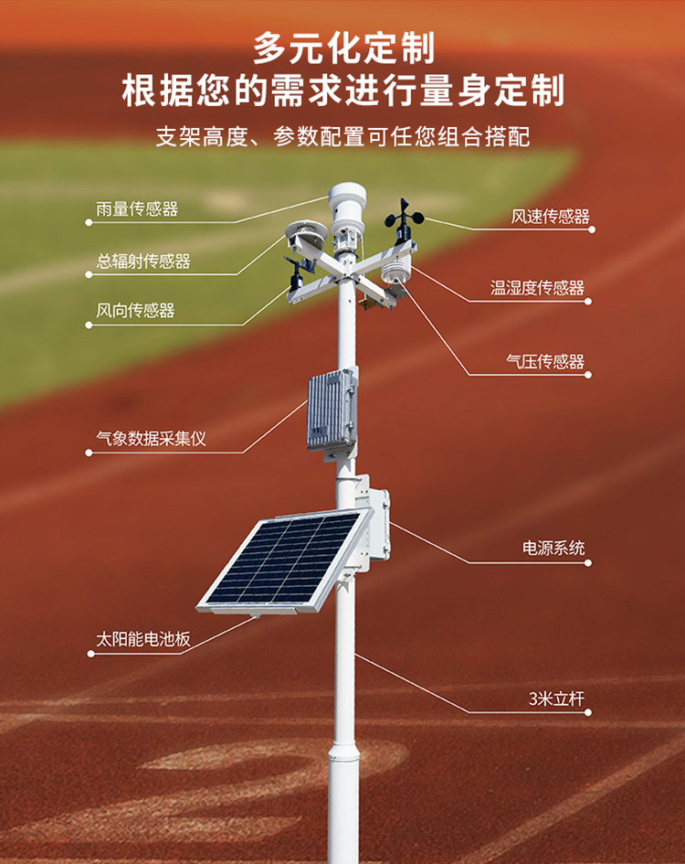 校園氣象站,集先進(jìn)監(jiān)測(cè)與智能分析于一體,實(shí)時(shí)記錄溫度、濕度、風(fēng)速等氣象數(shù)據(jù),為校園師生提供精準(zhǔn)氣象信息,它不僅能為學(xué)校的氣象科學(xué)教育提供實(shí)踐平臺(tái),幫助學(xué)生們更好地了解氣象知識(shí),還能為學(xué)校的體育活動(dòng)、戶外教學(xué)、防災(zāi)減災(zāi)等提供重要參考,助力校園智慧管理。